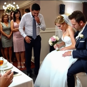 Right in the middle of the wedding, something stirred beneath the bride’s dress — and the groom’s expression instantly changed.