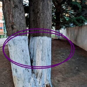 Yesterday, officials showed up in uniform and began painting our neighborhood tree trunks white. They coated every tree—why? See the first comment for the answer…