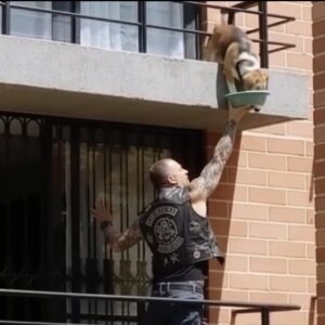 One ordinary afternoon turned extraordinary when a tattooed biker named James Morrison was seen scaling a neighbor’s balcony. From a distance, it looked like a break-in, but…